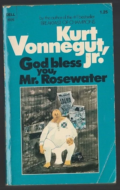 God Bless You, Mr. Rosewater, or Pearls Before Swine, is a novel written by Kurt Vonnegut, published in 1965. It is the story of Eliot Rosewater, a millionaire who develops a social conscience, abandons New York City, and establishes the Rosewater Foundation in Rosewater, Indiana, “where he attempts to dispense unlimited amounts of love and limited sums of money to anyone who will come to his office.”